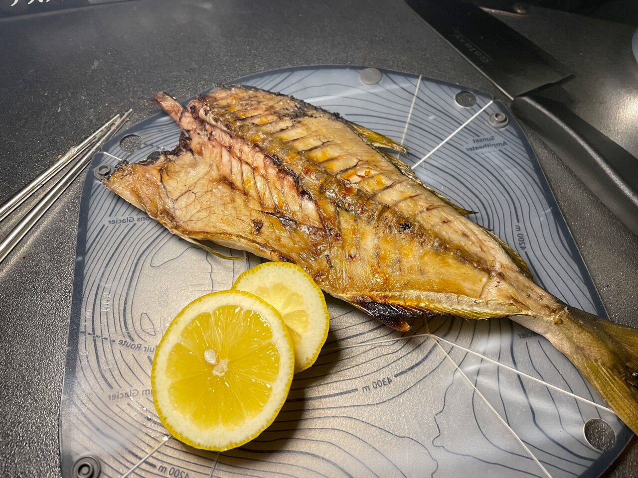 半身は焚火で塩焼きにしてみましたが、焼くと身がふわふわで、こちらも大満足。地元食材を購入してすぐに食べれば、うまいだろうという考えは間違いではありませんでした。