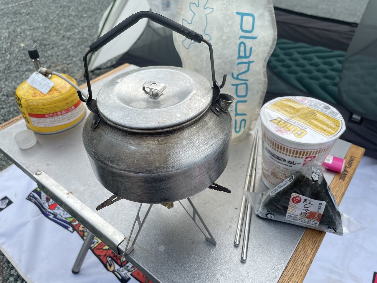 翌朝は汲んできた地下水を利用して、カップラーメンをいただきました。