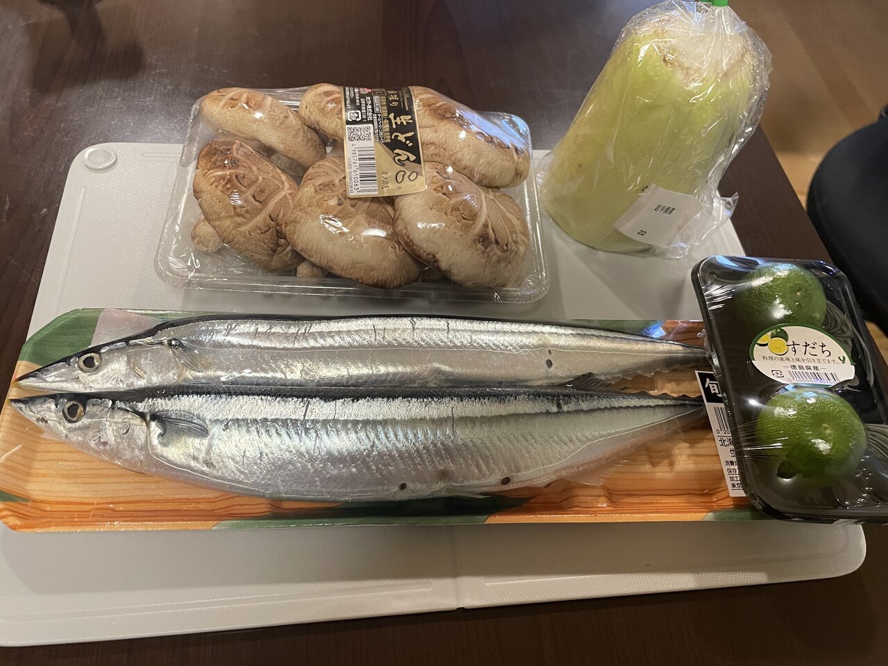 食材は今年豊漁のサンマを中心に、秋らしいものとして、どんこしいたけや舞茸を用意しました。思えば去年もサンマを炭火で焼く企画を行いましたが、今回も出来上がりが楽しみです。