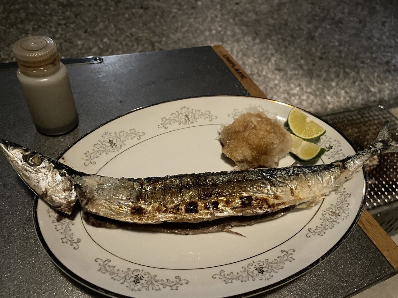 ガスでも十分美味しいけど、やっぱり炭火で焼いたサンマは最高です。