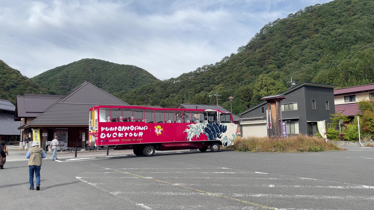 湯西川ダムでは水陸両用バスを利用したダムツアーが催されていて、ダムの水面上を探検気分で観光することが可能。小さな温泉地ですが、さまざまな施設やサービスがあって充実しています。
