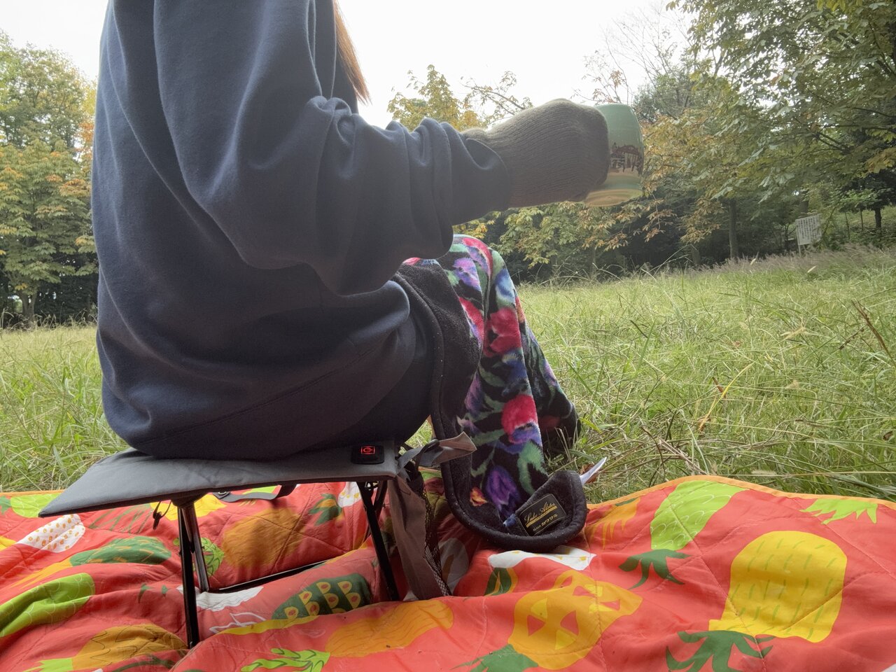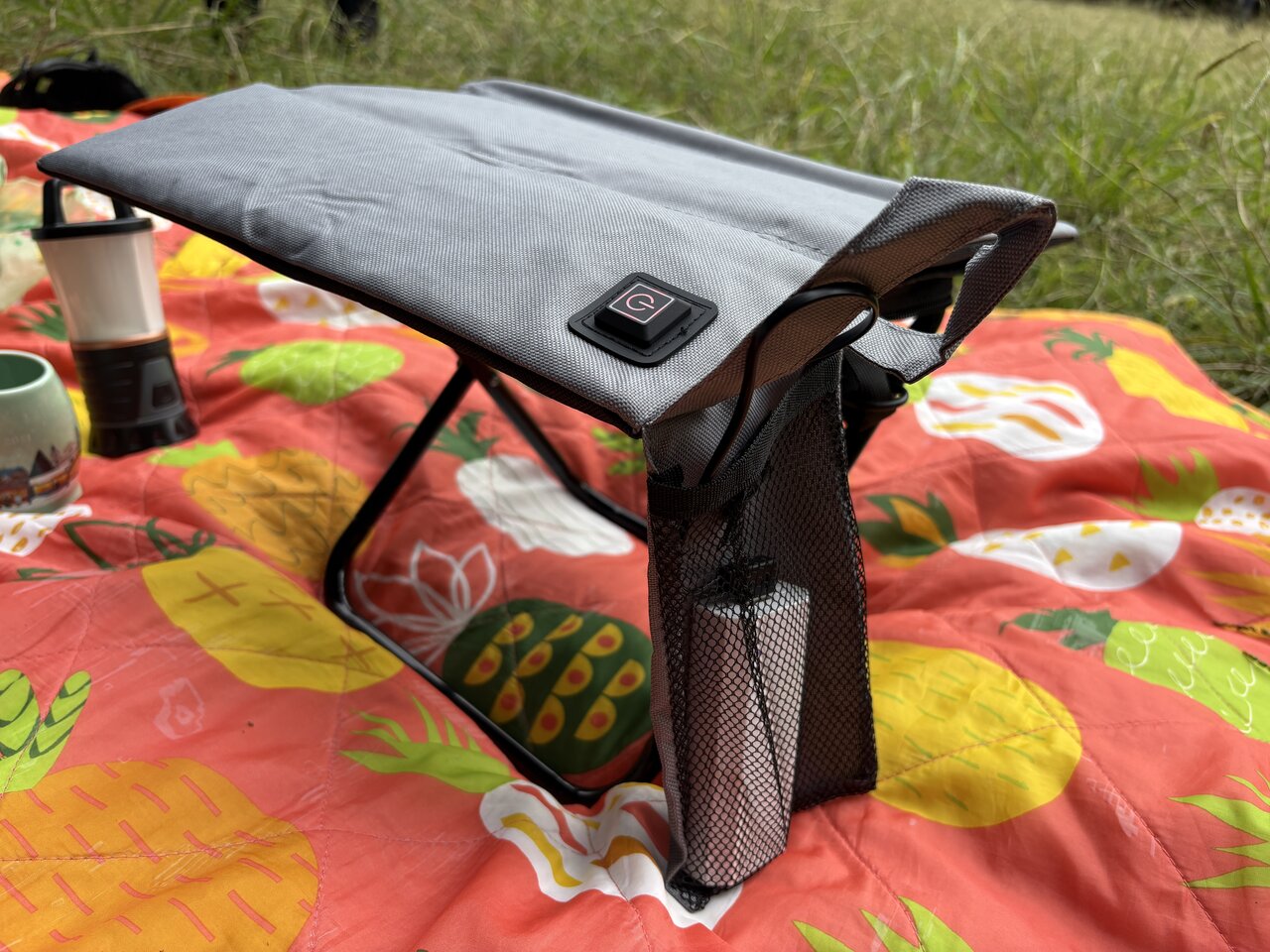 公園に持参した折りたたみチェアの上に座布団をセット。Type-Aコネクターをモバイルバッテリーに差し込み、スイッチをオンにします。すると、わずか数十秒でほのかに温かさが広がり、1分もしないうちに尻がぽかぽか。冬の冷気でこわばっていた体が、すぐにじんわりほぐれていくのを感じました。