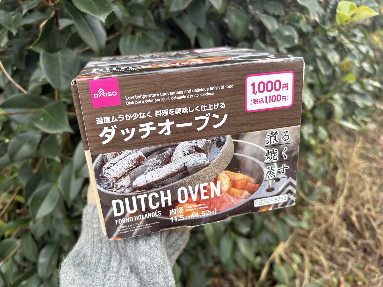 その火にかける鍋として選んだ、ダイソーの「ダッチオーブン」(1100円)。価格を聞いた時点で、「サイズも控えめだし、本格的に使うのは難しいだろう」と思っていました。