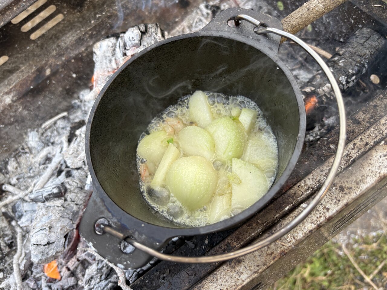 このダッチオーブンは万能な道具でなく、一生使い続けるようなアイテムでもないと思います。ただ、1100円という価格で、火のそばに鍋を置きたくなる理由ができました。火の様子を見ながら待つ時間を、自然と楽しめるようにもなります。食べ終わったあとには、次は何を作ろうかと考えていました。