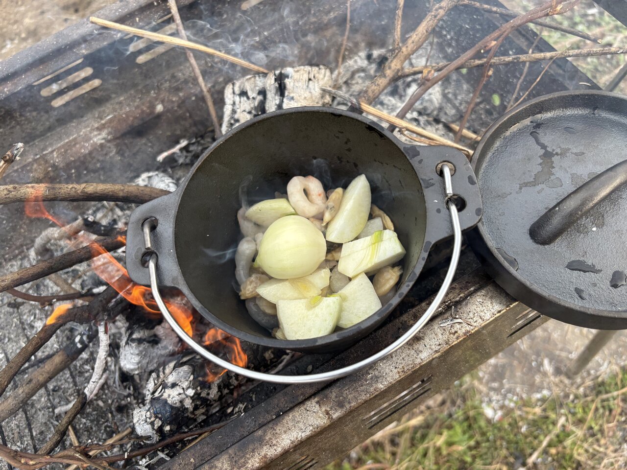 炭や薪を使った調理では、「様子を見られること」が安心感につながります。このダッチオーブンは重厚さよりも失敗しにくさを優先した設計だと感じました。