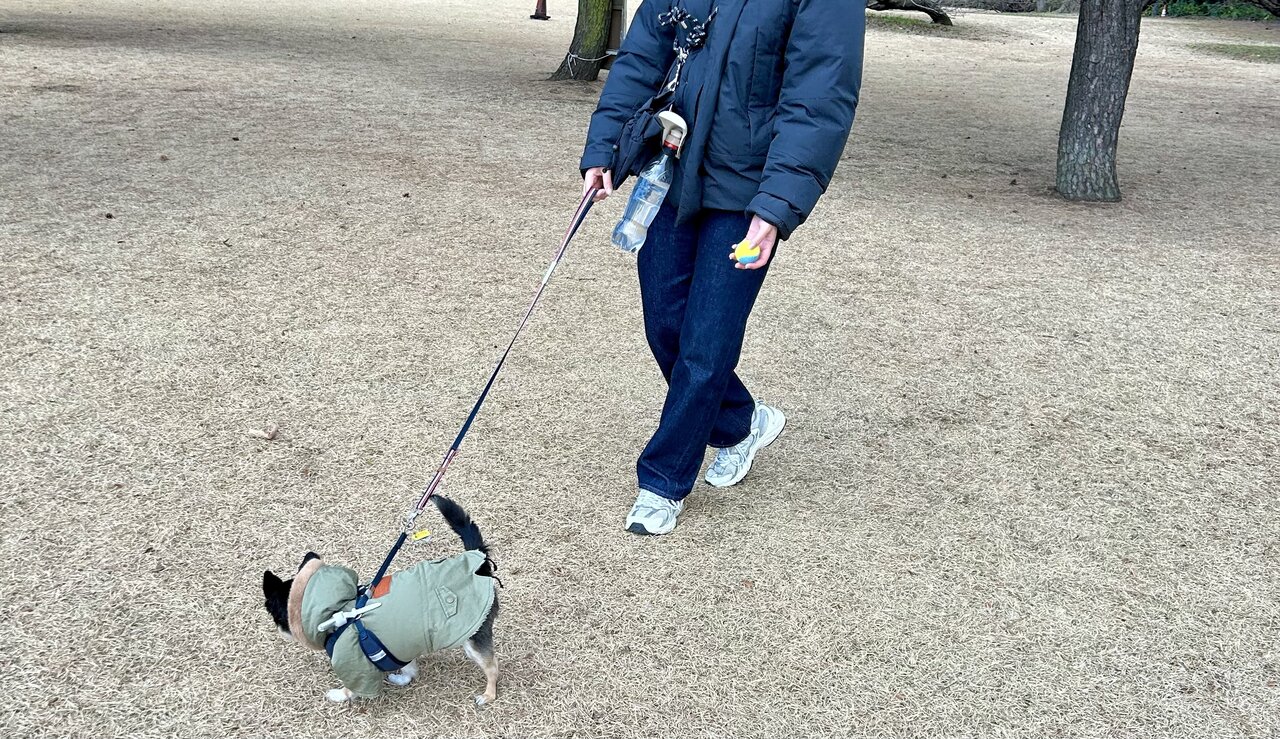 【愛犬バッグ選】3COINSの「お散歩ショルダーセット」が大きな公園の遊びにぴったりだった