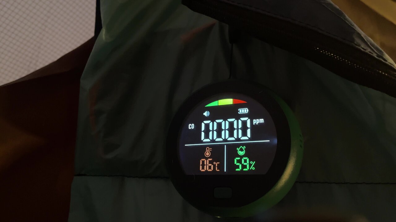 固形燃料や豆炭こたつを使うので、換気のための体制はしっかりしているつもりですが、念のため一酸化炭素チェッカ―を導入して安全にキャンプしていきます。