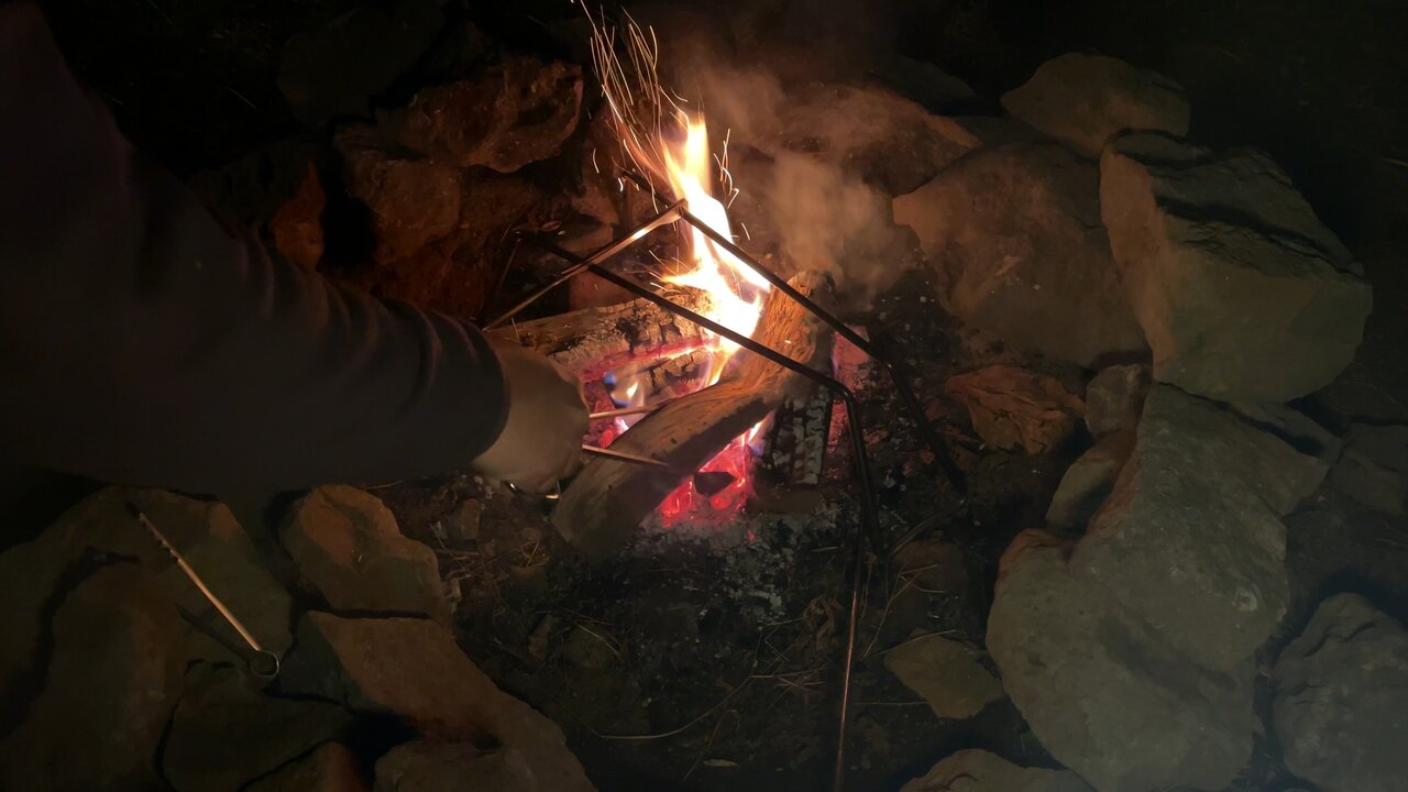 せっかくなので久しぶりに直火での焚き火に挑戦。火の世話をしながら日暮れを待っていると、目の前に湯河原の夜景が広がりました! ワイルドなファイヤーピットと都会的な夜景を同時に楽しめる場所は、他になかなか無いのではないでしょうか。