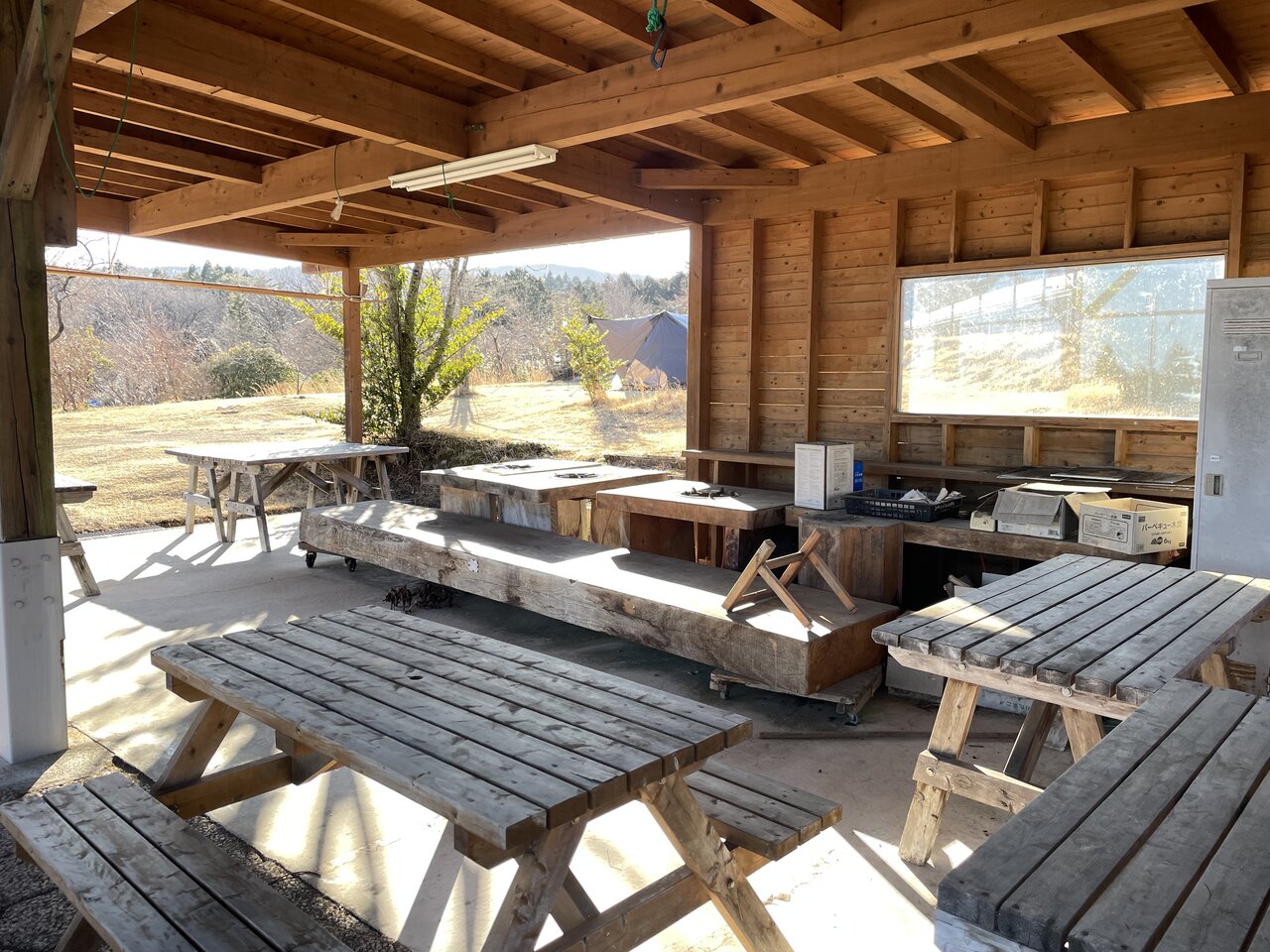 展望台の下は炊事場になっていて、屋根の下で調理や食事をすることもできます。悪天候の時でもこういった設備があると安心ですね。