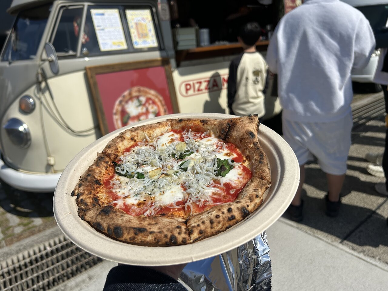 そして大磯市の中でも群を抜いて行列を作っていたのが、PIZZA MONTE COSTA。キッチンカーの中にはピザ窯が備えられていて、注文してから丁寧に焼き上げています。この日はテレビ取材も来るほどの注目度の高さに、期待が高まります。