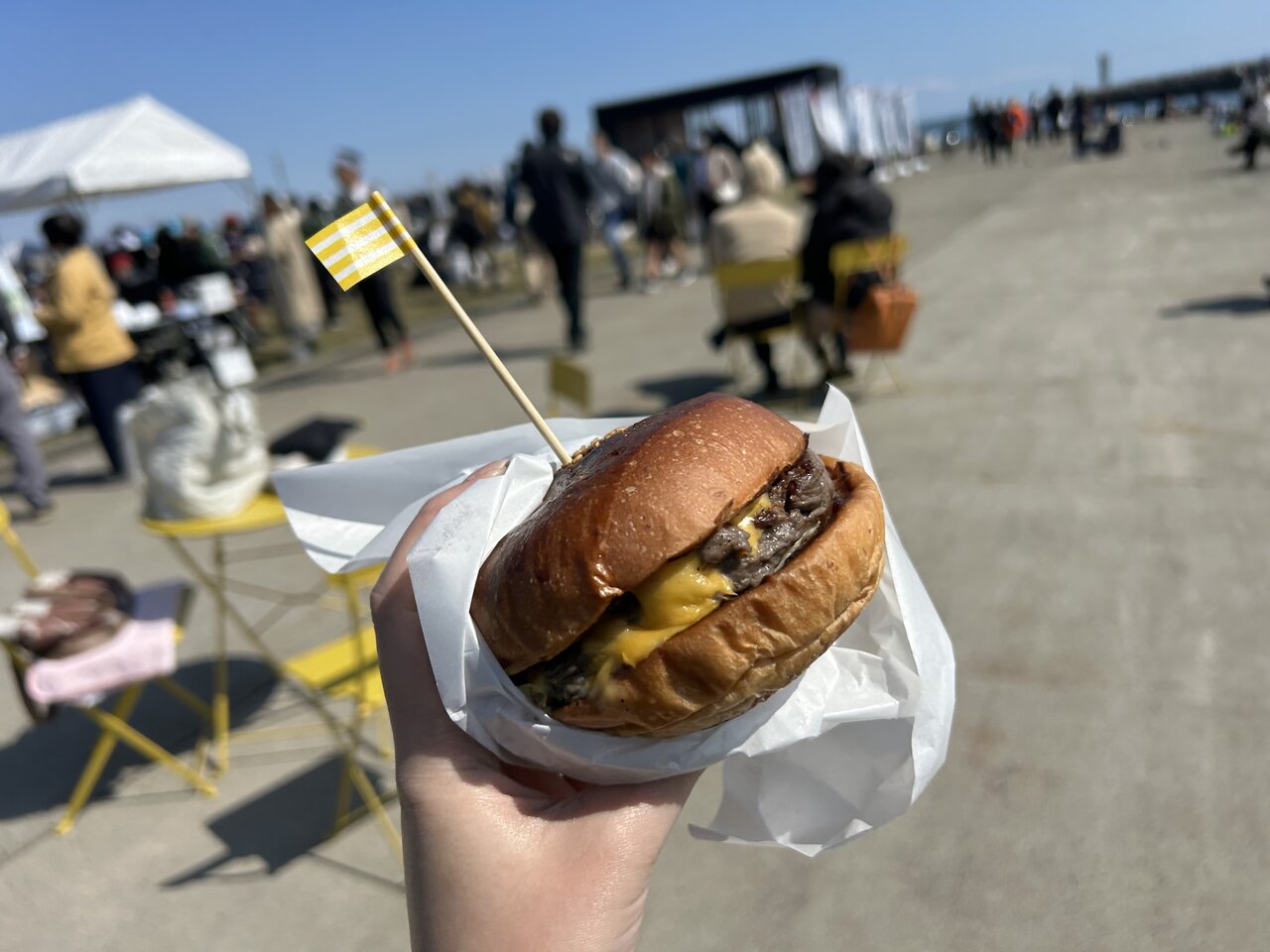 続いて気になったのはYasuda Burgur。従来のキッチンカーとは一線を画す、カッコ良い佇まい。この存在感に惹かれて、気づけば列に並んでいました。お目当てだったスマッシュバーガーは残念ながら売り切れでしたが、代わりに選んだ和風仕立ての「W肉厚ビーフ炙り醤油風 シングル」(1200円)。これまで食べたことのない和風のハンバーガーに期待が膨らみます。