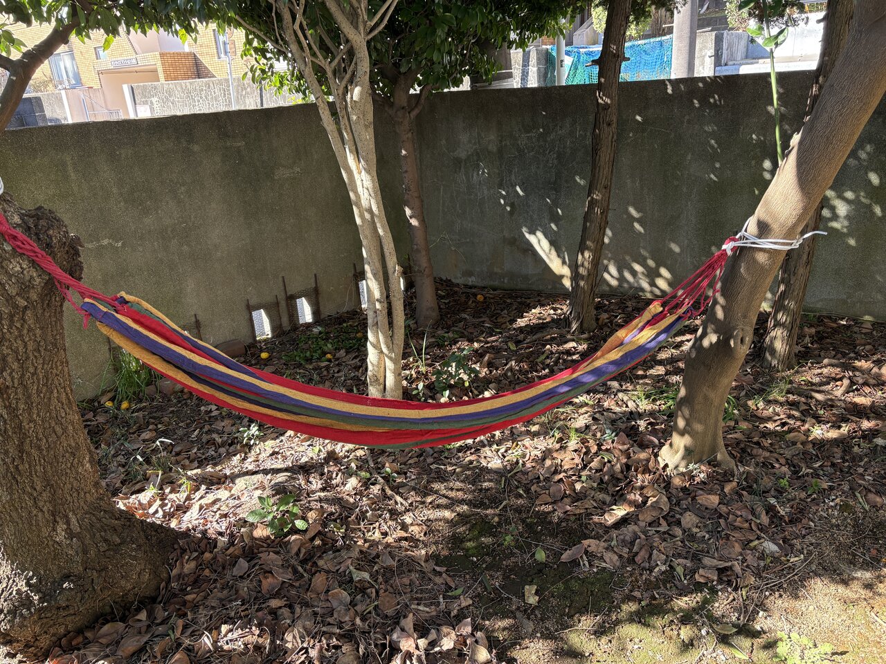 筆者の家の庭には木が多く、ロープを結べばハンモックを吊るせそうな環境でした。ハンモックに揺られながら過ごす休日時間は、さぞや楽しいものなのでしょう。吊るした後に、昼寝や読書をしながら過ごしてみました。