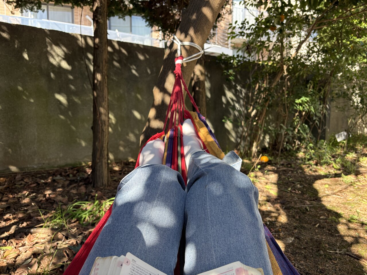 試してみて感じたのは、ハンモックの良し悪しより、ハンモックがあると何ができるようになるのかということでした。庭で昼寝をする、本を読む、子供と揺れて遊ぶ、そんな時間が自然に生まれます。特別なアウトドアをしなくても、庭の過ごし方が少し変わる。ハンモックは、そんな小さなきっかけになる道具なのかもしれません。