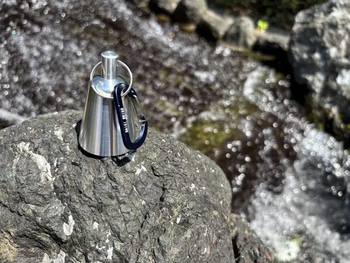 「DaiFeel ZERO」の音色は周波数3700〜3900Hzという高音域かつ、70〜80dBの音量。熊鈴としての機能を発揮しつつ、つけ続けても聞き疲れしにくく、山間でも抜けよく通る高音域です。細く頼りなくなりがちな高音域の音色でも、内部形状と重量バランスで芯のある響きを実現しました。