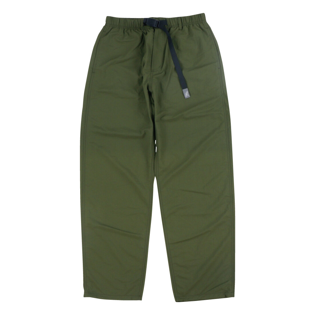 グラミチコラボからは、撥水性を備えた軽量素材を使用したナイロンパンツがお目見え。180度の開脚を可能にするガセットクロッチや、片手で調整できるウェビングベルトなど、グラミチの代表的商品であるクライミングパンツを彷彿とさせる仕上がり。緩やかなテーパードシルエットで、動きやすさとデザイン性を両立しています。