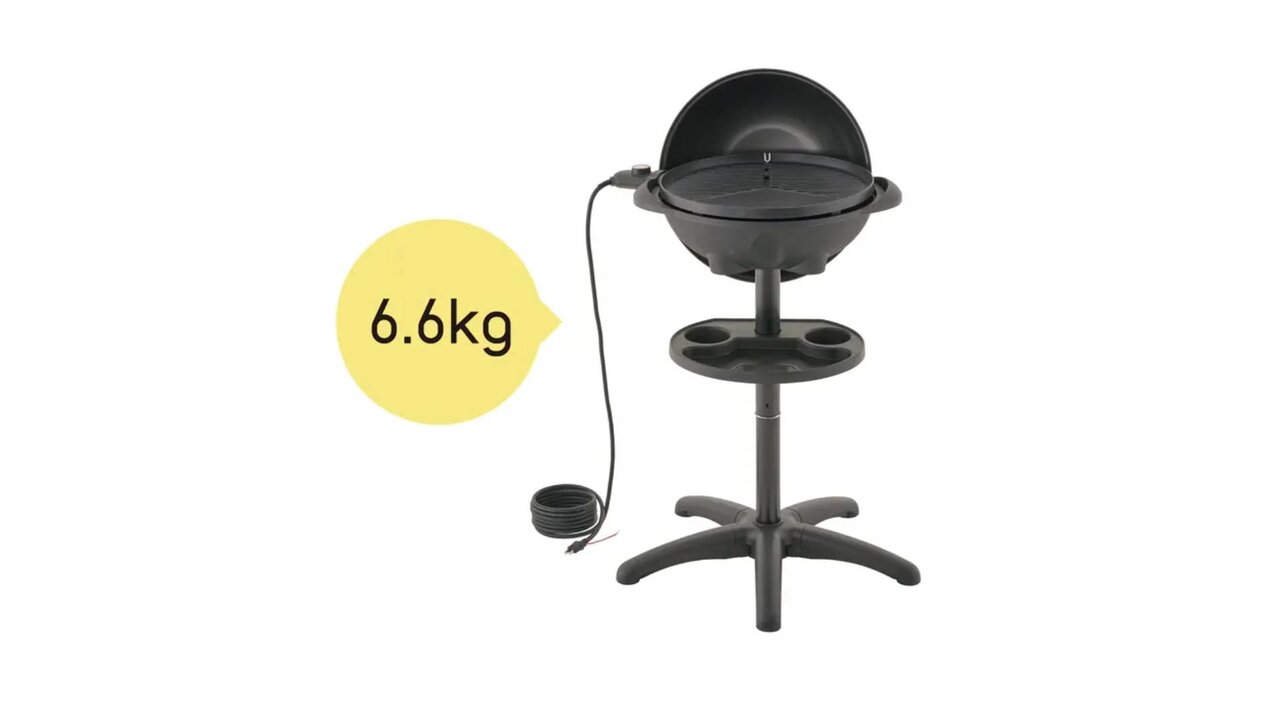 本体は従来品「LOGOS CHEF BBQエレグリル」から約40%軽量化し、重量は約6.6kgに。スタンド使用時は高さ100cmで立ったまま、取り外せば卓上でも楽しめる2WAY設計です。