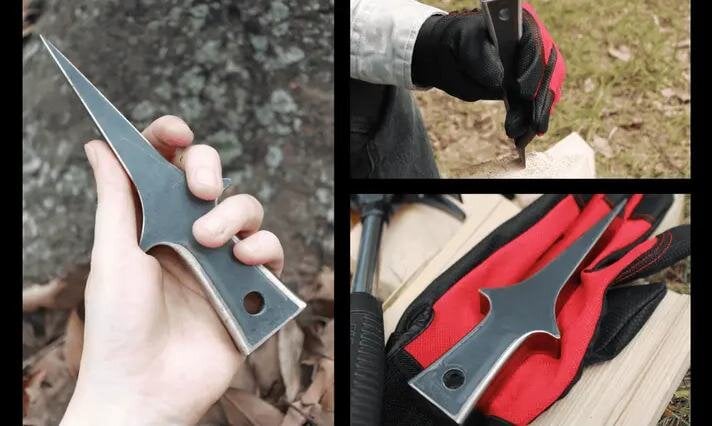 片手で扱えるコンパクトサイズで、ハンマーで軽く叩くだけで薪にすっと食い込み、大きな力や特別な技術は不要。楔は刃物ではなく、鋭利な歯を使わないので子供でも安心して使えるアイテムです。これならキャンプで「やってみたい」という子供の声にも応えてあげられそう。