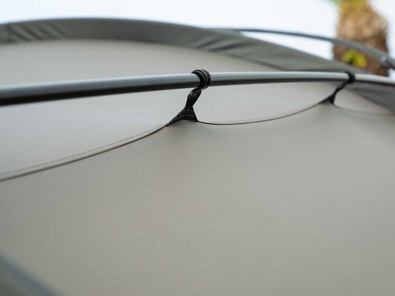 ルーフプロテクタが、標準装備されているところもポイント。強い日差しや長時間の降雨時でも、テントを保護。結露の発生も軽減してくれるので、撤退時のお手入れも手軽です。また、フロントをTPUパネルに換装することで、寒暖差のある時期でも快適なおこもりキャンプを満喫できます。