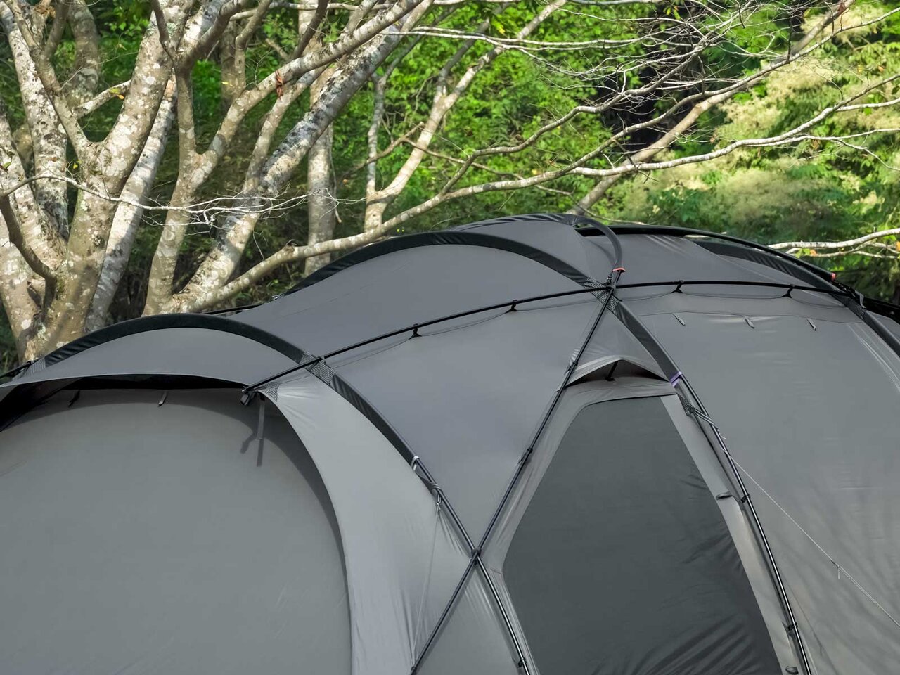 長時間屋外で過ごすキャンプだからこそ、特に夏場は厳しい日光が気になるもの。遮光PUコーティングが施されているため、真夏の強い日差しをガードし、雨天時には連結部の雨漏りを防いでくれます。天候に左右されることなく、家族や友人と会話や食事を楽しめそう。