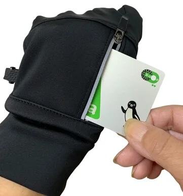 「これ最高〜!」と感じたのが、この隠しギミック。手の甲部分にはICカードや愛車のスマートキー、小銭を入れられる便利なファスナーポケットが搭載されています。反射ファスナー仕様で、夜間や視界が悪い場所でも視認性が確保できるデザイン。左右を繋ぐクリップ付きで脱落防止もばっちりです。
