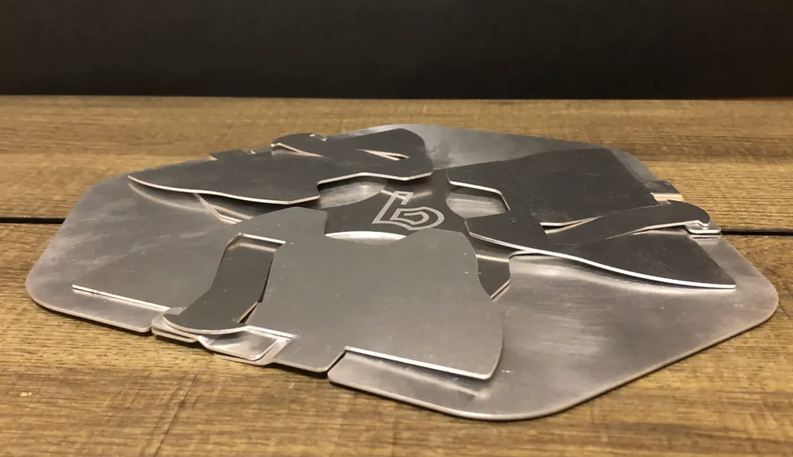 一見ぺたんこなプレートのように見えますが、ひっくり返すと不思議。ワンアクションで、まるでちゃぶ台のようなテーブルに変身します。荷物量が限られる、山登りやキャンプツーリングにぴったりだ。