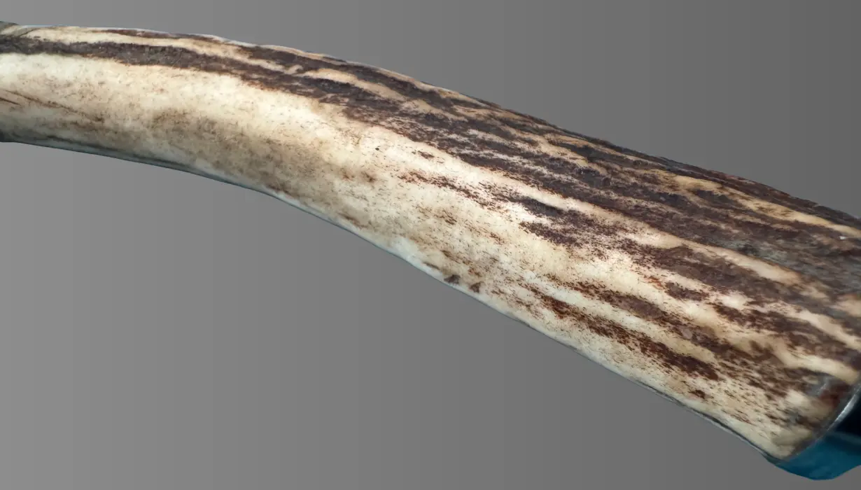 鹿の角を一本一本削り出しているため、模様や形が一点ものとなっています。鹿角ハンドルは、その密度の高さと表面の微妙な凹凸により、握ったときに手にしっかりとフィット。滑りにくく、乾いた手でも濡れた手でも安定した操作が可能です。