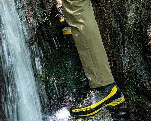 高い防風性や撥水性、速乾性、立体デザインといった屋外行動で必要な機能がまるっと搭載された、finetrack「ストームゴージュアルパインパンツ」。登山だけでなく春スキーや沢登り、クライミングなど、アウトドア全般で活躍します。