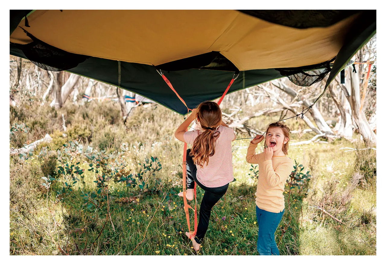 テントとハンモックのいいとこ取りをした、新しいキャンプギアが日本上陸。寝室とリビングの両機能を備え、プライベート空間を確保しながら、ゆりかご効果も得られるとのこと。見るからに気持ちよさそうだ〜!
