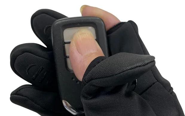 「ランダイバーグローブ」の最大の特徴は、指先を出せる自由さ。親指や人差し指の指先を独立して出せる構造により、スマホのタッチ操作、小銭の出し入れ、釣り道具の管理など、従来の手袋では難しかった繊細な動きが可能に。寒さを防ぎながら、自在に手を使えるのが大きなメリットです。