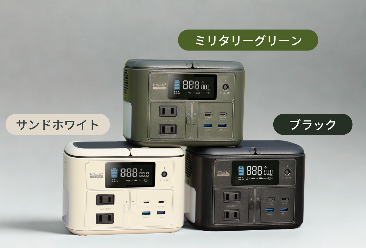 カラーは「ブラック」「サンドホワイト」「ミリタリーグリーン」の3色展開。初めてのポータブル電源の候補に入れてみては?