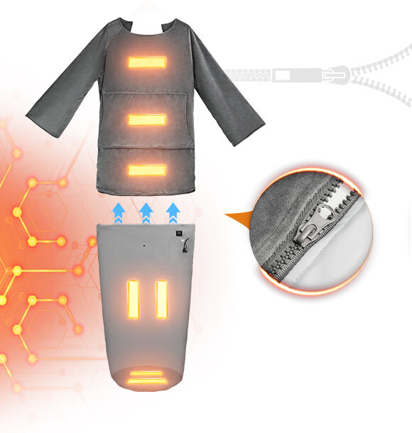 「GUOER Warmth」は、上着部分とパンツ筒部分が完全に分離可能な革新的なデザインを採用。それぞれに独立した電源ポートを搭載し、シーンや状況に応じて「上だけ」「下だけ」「両方」の使い分けが可能になっています。これにより、必要な部分だけを効率的に温めることができ、無駄なく暖かさを感じられるでしょう。