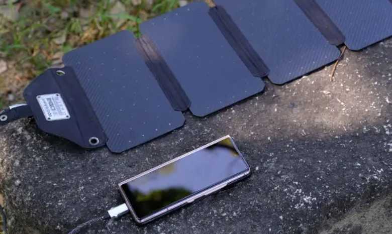 TypeAとCで接続できるので、スマホだけでなくドローンやキャンプギアなど幅広いデバイスの充電に活用可能。少ない光で発電するため、充電中のスマホが熱くならないところもうれしいポイントです。
