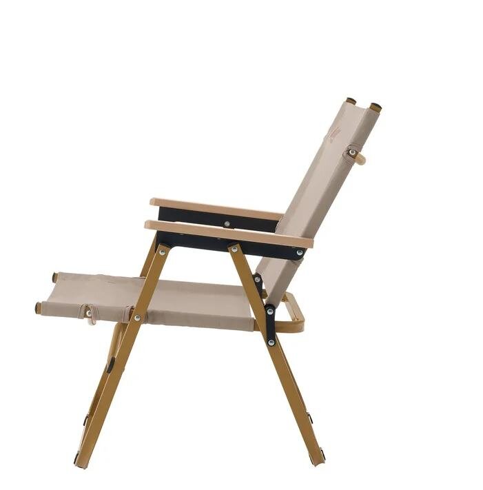 フレームはぐらつきにくい枠フレーム構造。しっかり体を支えてくれるので、長時間でも抜群の安定感。背もたれにはほどよい傾斜があり、自然と力が抜けるリラックス姿勢に。焚き火やアウトドアの時間がもっと心地よく過ごせそう。