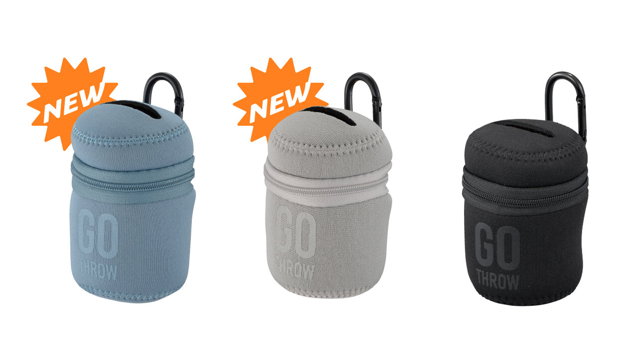 通常サイズのラインアップに、スタイリッシュなグレーと爽やかなブルーの新カラーも仲間入り。定番色と合わせて、お好みのファッションやバッグに合わせてコーディネートできます。「GO THROW」を取り付けて、お出かけをスマートに楽しんでみませんか?