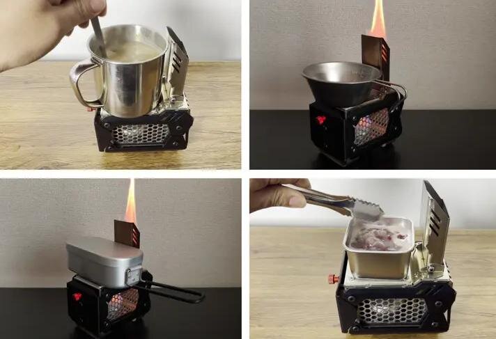 アウトドアギアで重宝されるポイントの一つが、どんな燃料でも使える汎用性。薪や小枝など現地調達できる燃料に加え、固形燃料やアルコールなどさまざまな燃料にも対応。燃料を選ぶ自由が、使い手の創造力を無限に広げてくれます。