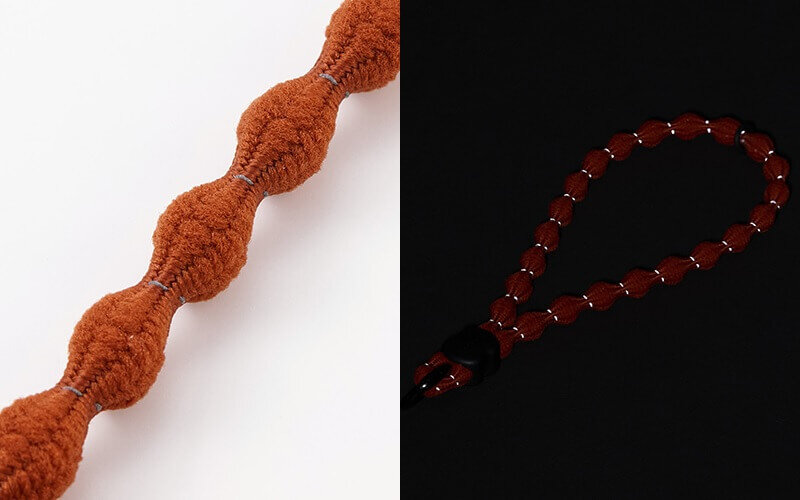 デザインタイプも2種類からチョイス可能。アウトドアや普段使いにもぴったりな「デザイン柄タイプ」は、コーディネートのアクセントとして活躍してくれます。もう1つは、反射糸を採用した「反射タイプ」。クルマのライトなどの強い光を反射するため、夜間の散歩や暗い夜道でも、ドライバーからの視認性が高まり安心して歩けます。