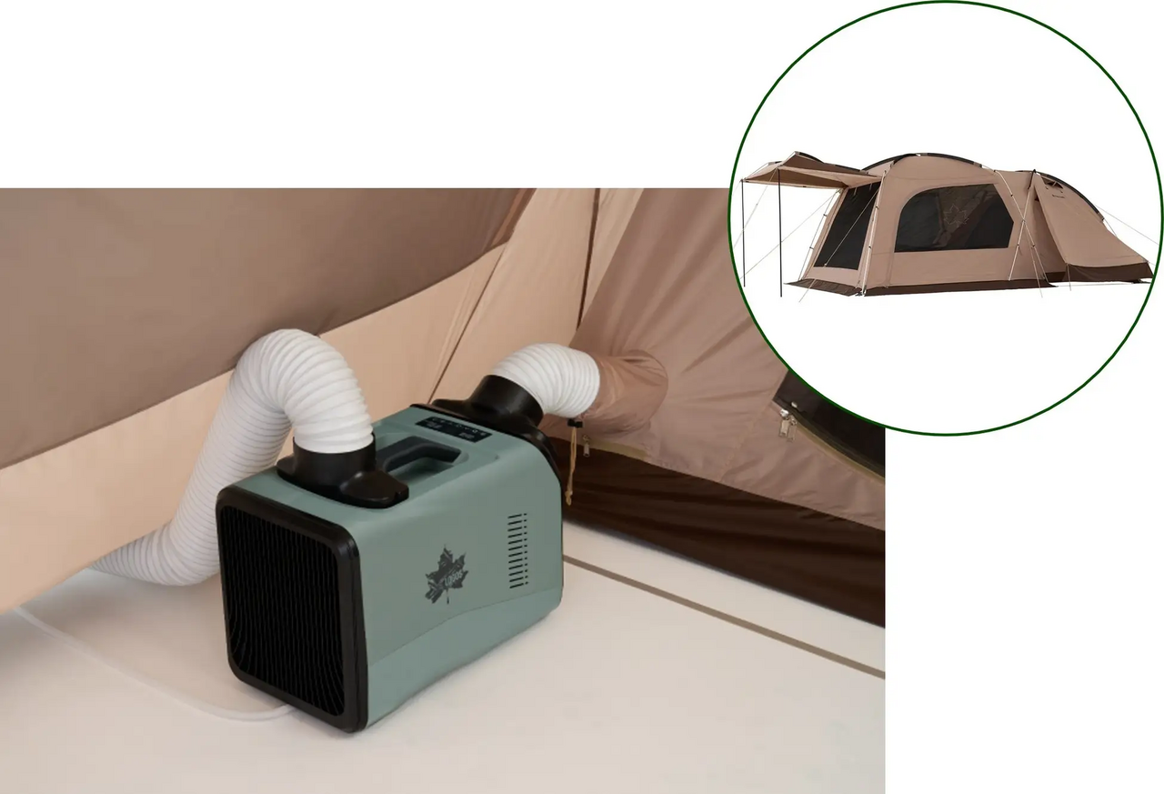 専用テントとの組み合わせで、テント内の冷房効率アップ