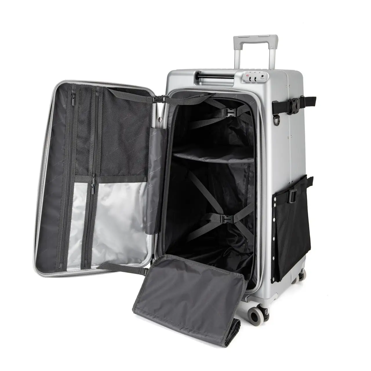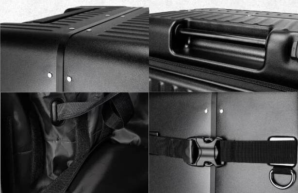 ボード・ブーツ・ウェアは内部で動きにくいよう固定可能。ダブルボード・シングルボードの同時搭載にも対応し、専用の固定構造によって移動中のズレや衝撃を抑える設計です。