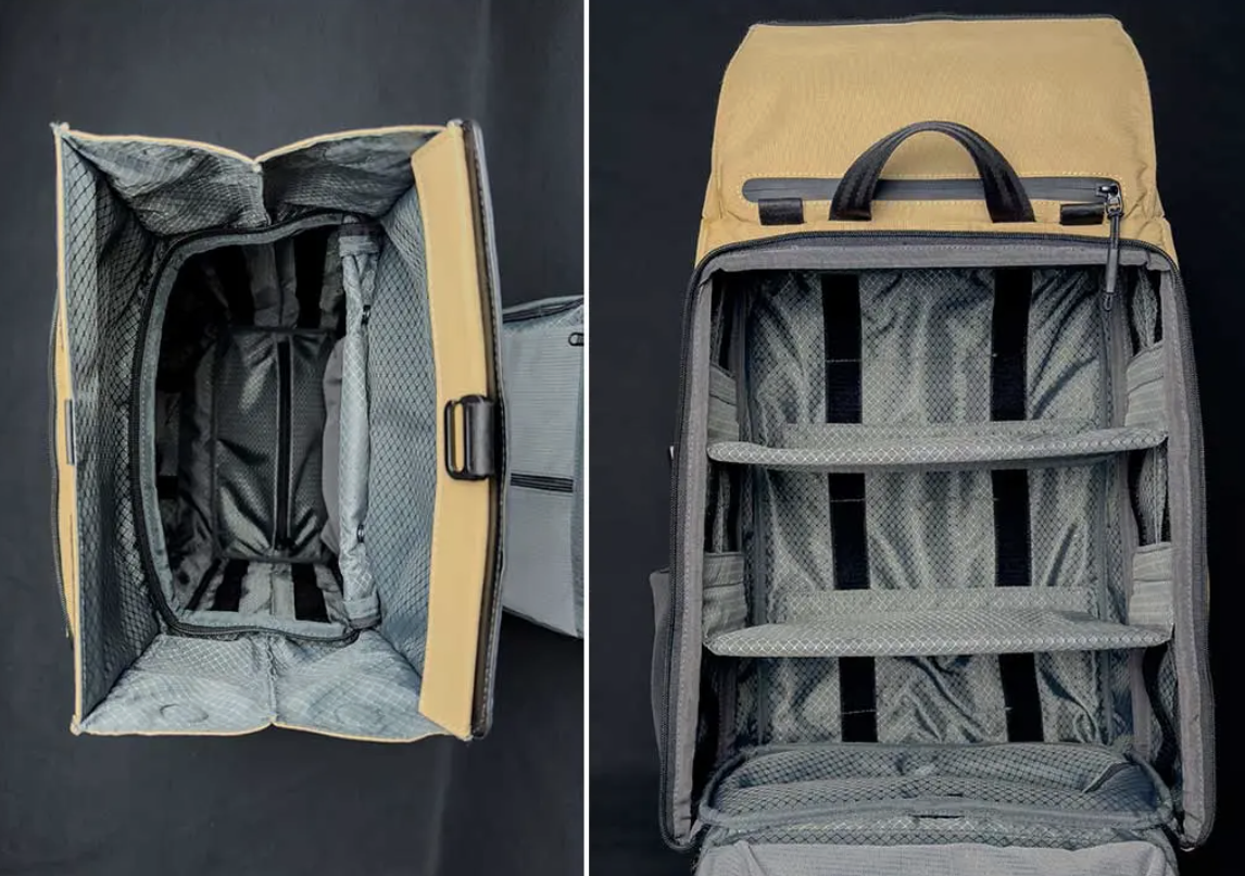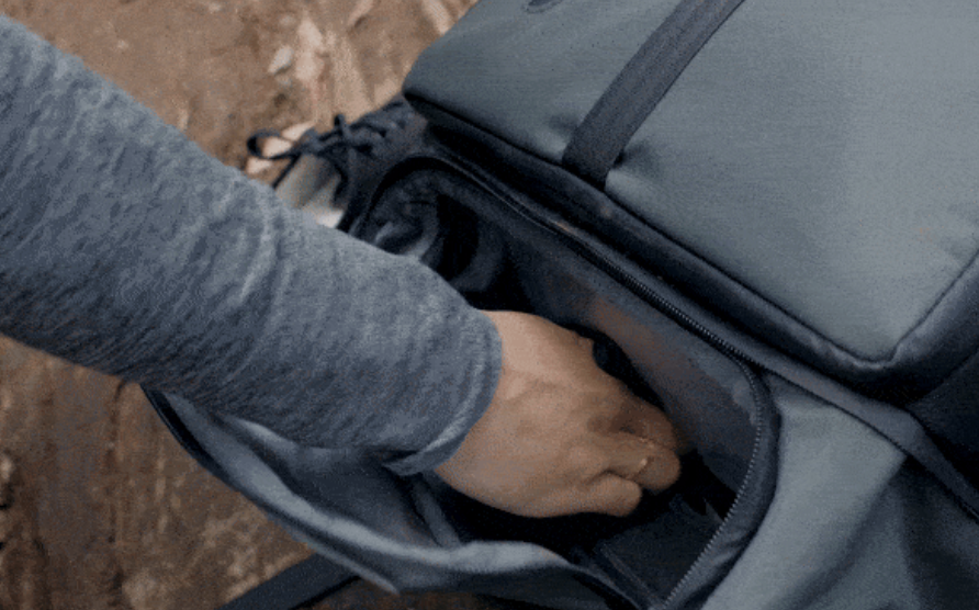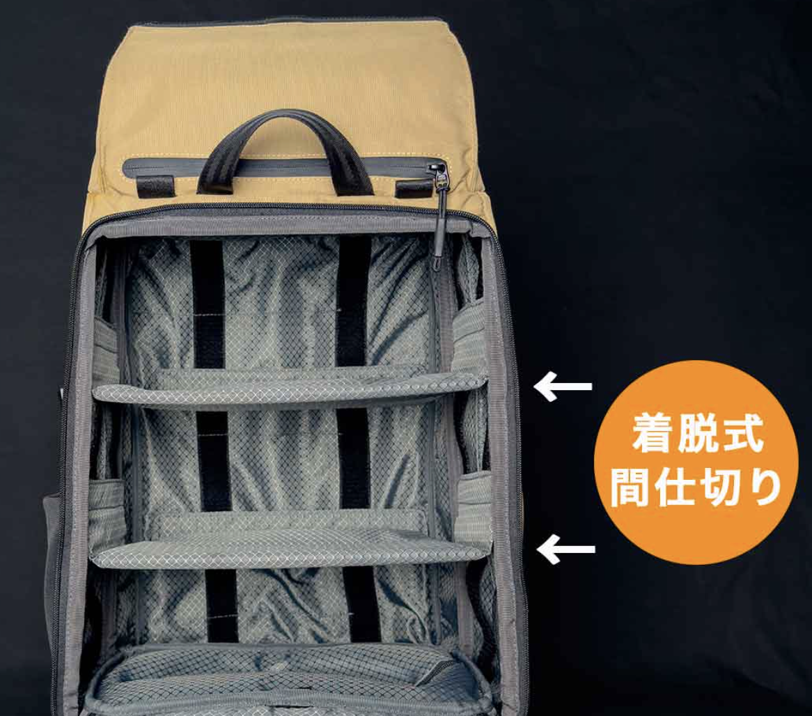 上、横、フロントバックの3方向から荷物にアクセス可能。上部取り出し口はロールトップを採用しているので、荷物の出し入れも手軽です。