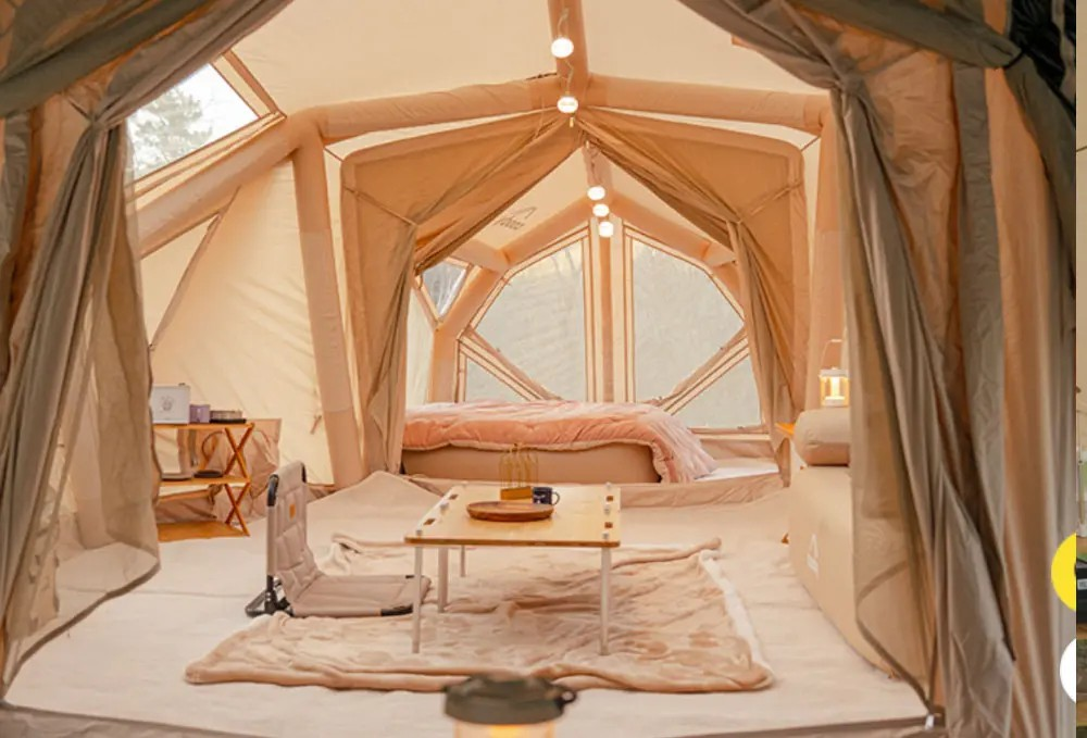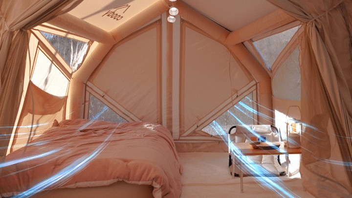 約5分で設営完了。広げて空気を入れたらテントが完成!