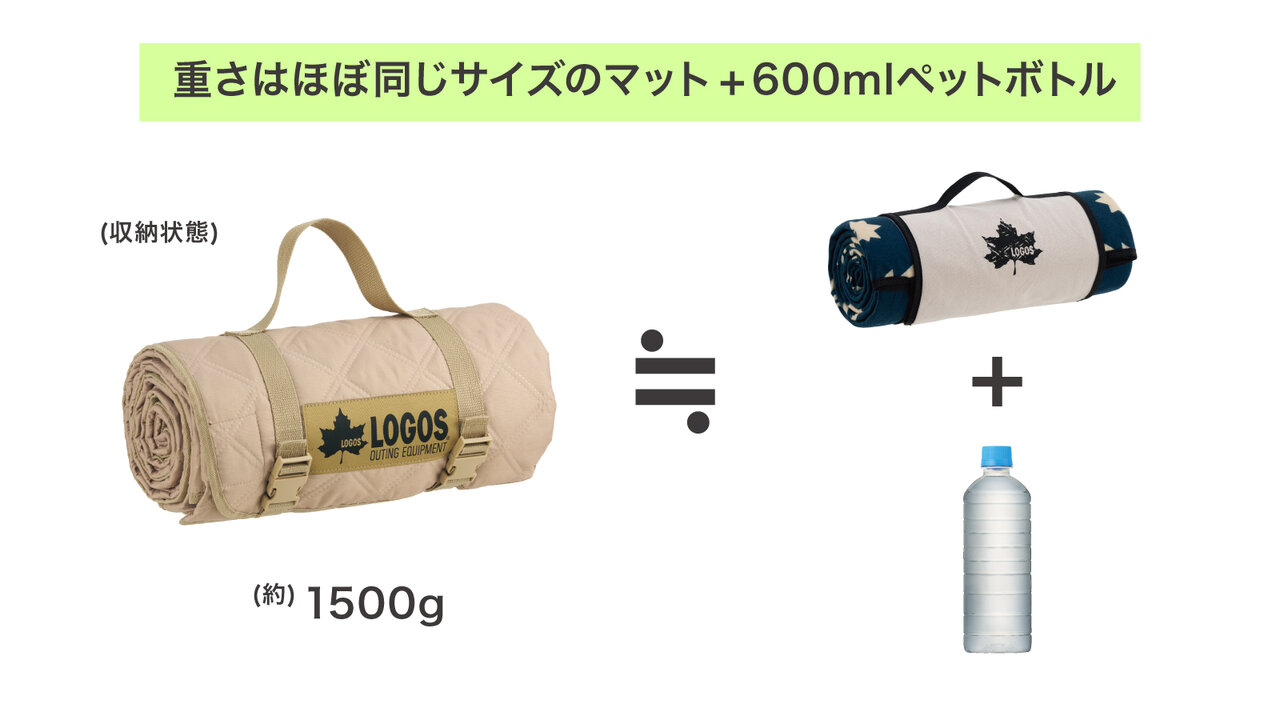 サイズは約165×200cmで、大人4人がゆったり座れる広さ。収納時は直径約15×長さ34cmにまとまり、バックル付きベルトでサッと固定できます。重量は約1.5kgと、持ち運びにも無理のない範囲です。