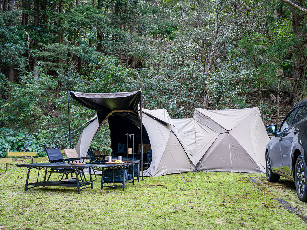 キャンプの楽しさは、自分の手でサイトを組み上げていく過程にもあります。ベースとなるテーブルに少しずつパーツを足して、自分だけのレイアウトを作り込む。そんな楽しみに触れてみては?