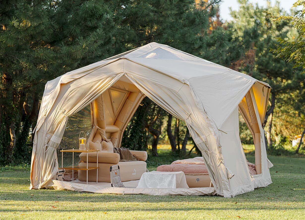 【アウトドア】まるで“運べる別荘”だ!連結できるグランピングエアテントが開放的すぎる