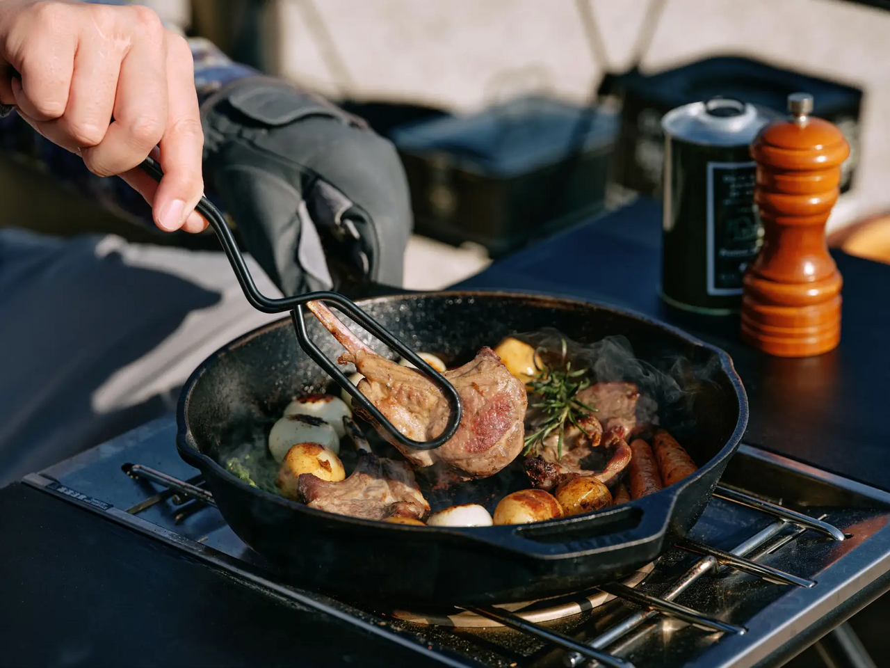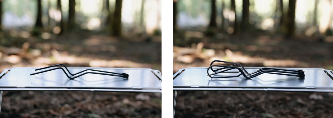 料理や焚き火で頻繁に使うトング。だからこそ、操作性には妥協したくないものです。新作の「モノライントング」は、ピンセットのような繊細な噛み合わせが魅力。先端が細くて小さな食材も狙い通りに掴める「ファイン」と、波型の形状で大きな食材もしっかりホールドする「ワイド」の2種がラインアップされています。
