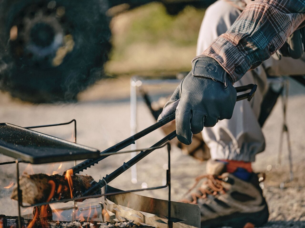 薪を安定して掴める「焚き火トング」は、独自の形状により力を入れやすい設計。長時間火をいじっていても、疲れにくくなっています。ステンレスの無骨な質感と、指先の感覚がダイレクトに伝わる精密な作り込みはトウキョウクラフトならでは。焚き火を囲む静かな夜、このトングで火を育てる時間は、至福のひとときへと変わるでしょう。