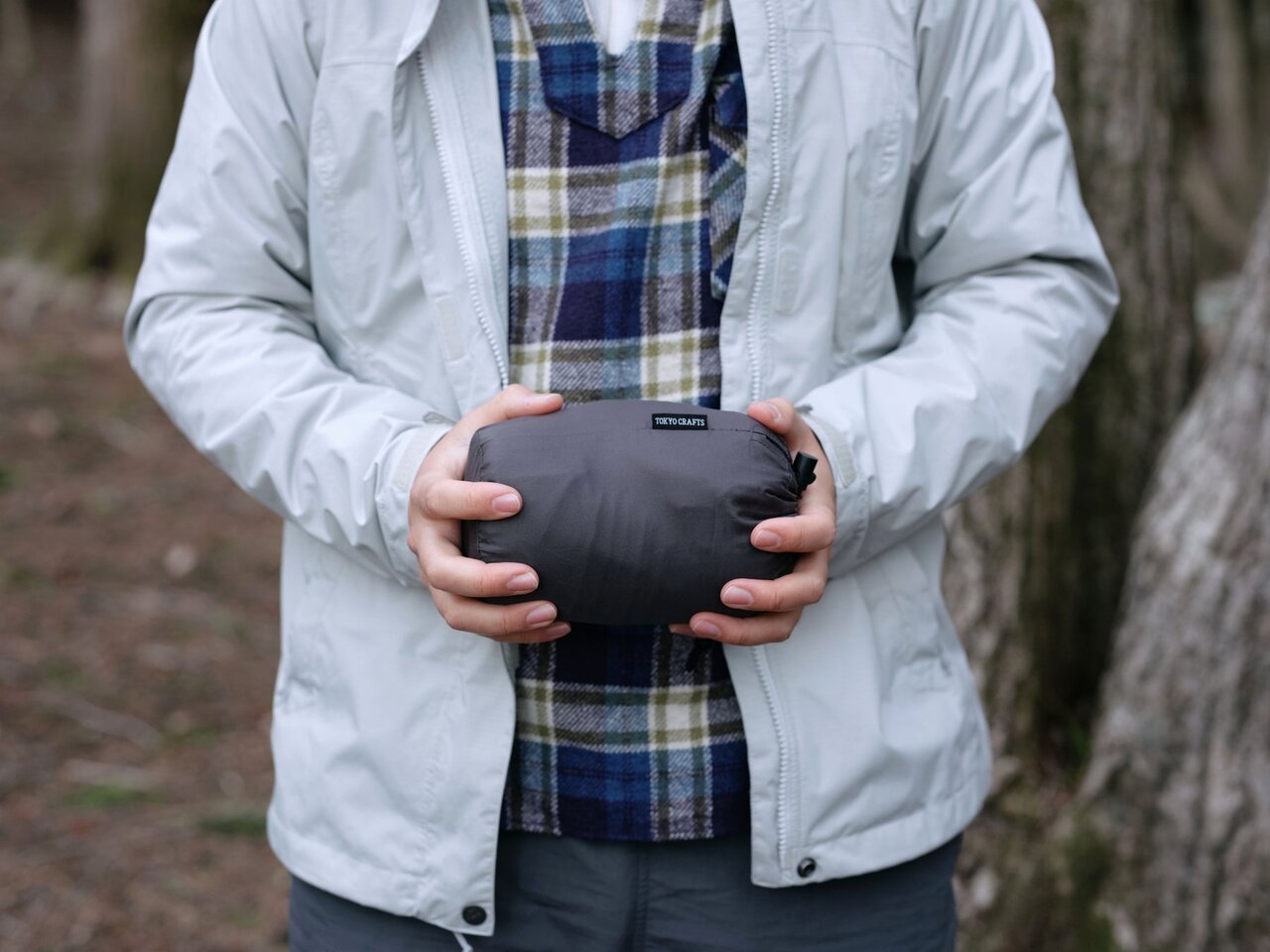 柔軟に折り畳めて、車載時もすっきり。肩掛けベルトも付属しているので、サイトまでの移動も軽やかです。