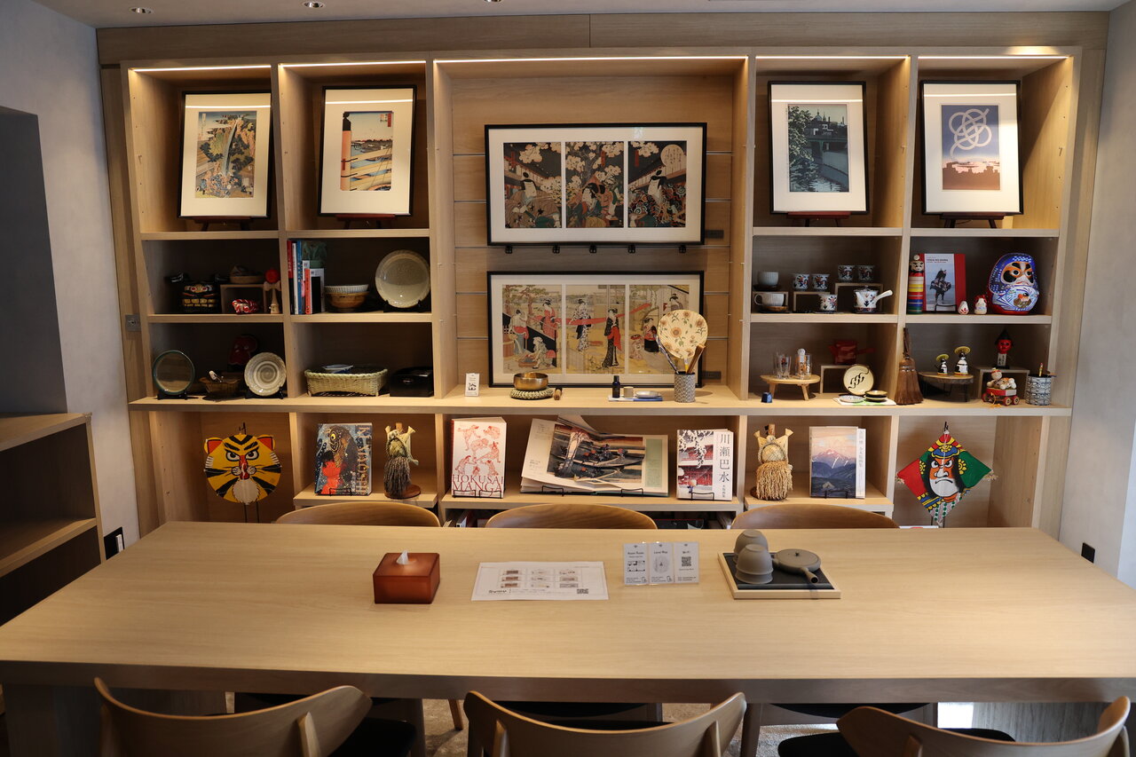 このロビーには日本カルチャーに関する多くの本が並び、ここもCCCがキュレーションしている特徴だ。スタート時点では館内の閲覧のみだが、いずれに購入可能になるかもしれない。力の入った選書なので、気に入ったら買って持ち帰られるのは嬉しいですね。