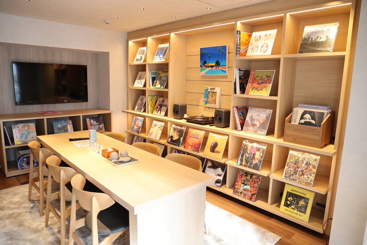 また、301の「Music」は、アナログレコードのある暮らしをテーマに、日本の音楽文化を日常の延長として体験できます。室内にはレコードプレーヤーと、近年海外でも人気の高いシティポップや邦楽の名盤など厳選されたレコードを配置。もちろん自分で買ってきたレコードも針にかけられるということだ。