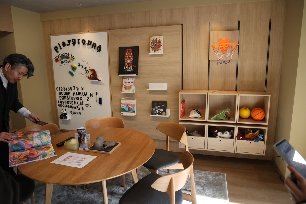 0号店となった「Sumu Ueno East」は10フロア9室。そのうち4部屋は各フロア(客室)ごとに特徴がある。例えば701の「Playground」は、家族で子供と遊びながら日本や東京を知ってもらうコンセプトになっていて、中長期滞在で小さな子供が飽きないような遊び心いっぱいの部屋。知的欲求が湧いてくるようなアイテムが揃っています。