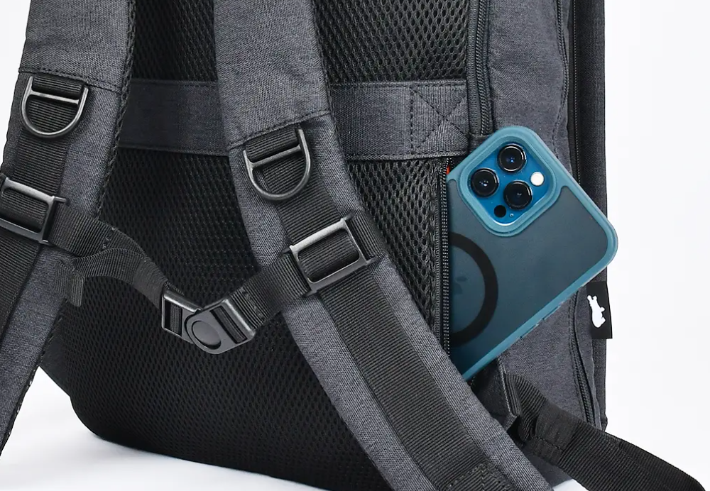背負った状態でも手が届くよう、背面にはポケットを搭載。スマートフォンやキーケースを入れておけば、移動中も立ち止まることなくスムーズに取り出せます。